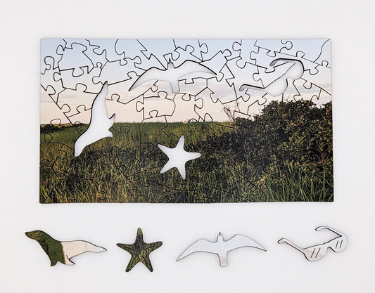 Dunegrass and Lifeguard Tower - Wood Jigsaw Puzzle - Miscroscene Series